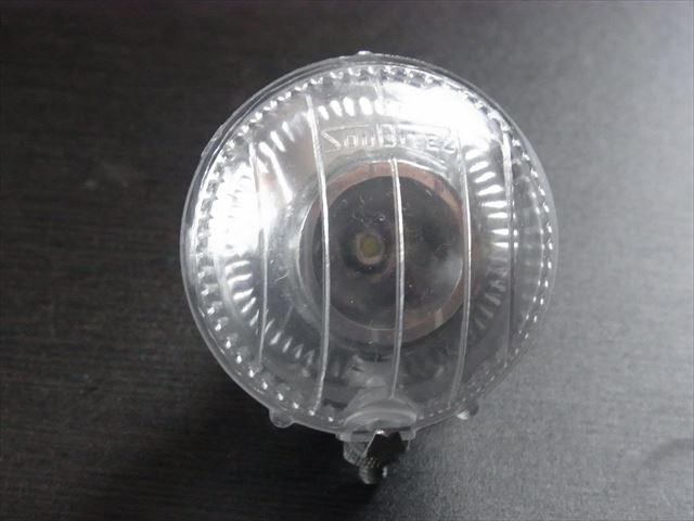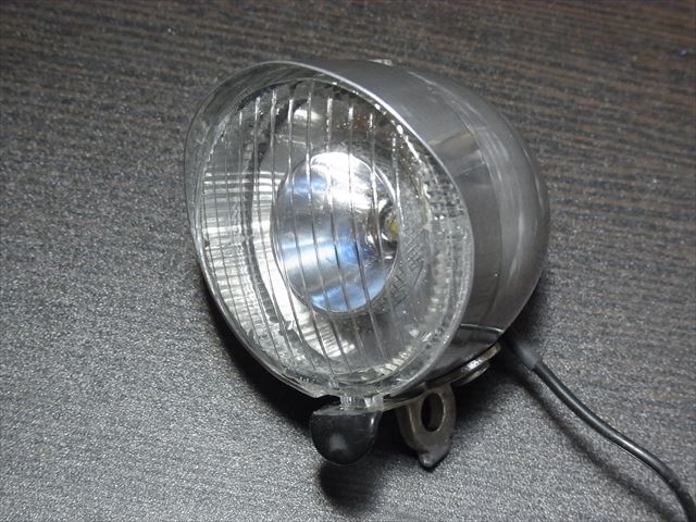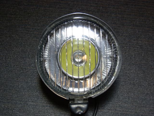 以前にピン球をLED (3W) に改造しましたが、集光の反射筒を作り直しました。 この反射筒はLED基板に接触するため、放熱効果がよくなります。 フロントキャリアに取り付けました。