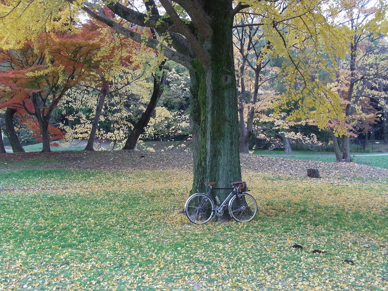 薄曇りで人影も少なく、公園内の所々に植えられた大きなイチョウが黄葉していました。 晴天だったらもっと色鮮やかでしょう。