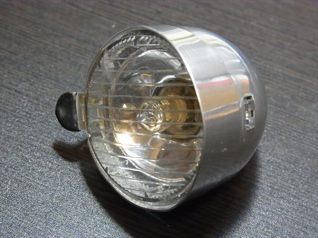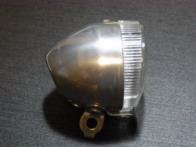 小さな砲弾型ライトです。 長さ50mm、レンズ径45mm メーカー名は不明です。ミツバ? AP14 本体のアルマイトを剥がしてプラレンズにちょっと細工をしました。