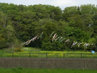 さわやかな風の中、三鷹大沢の里でこいのぼりが泳いでいました。