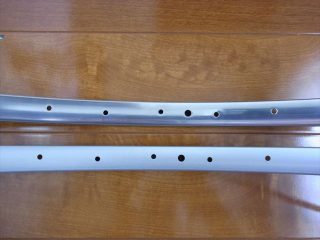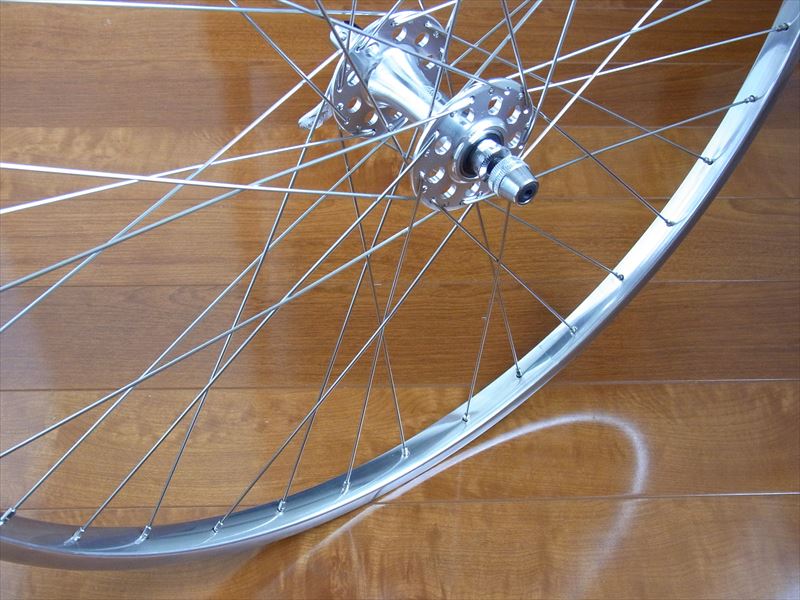 650Aリム (SP-30) のアルマイトを剥離してみました。 ホイールはイタリアンの 4クロス 8本組で組み上げてみました。