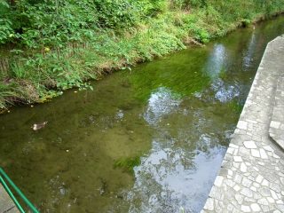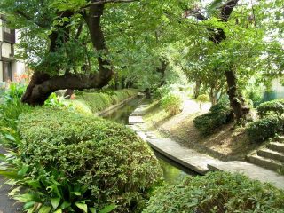 用水路の両側は桜並木になっていて、きれいな水が流れています。桜の咲く時期はにぎやかでしょうね。