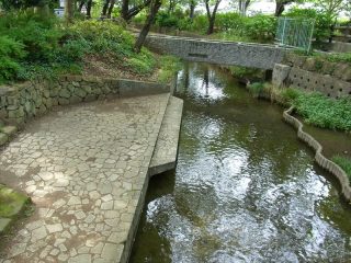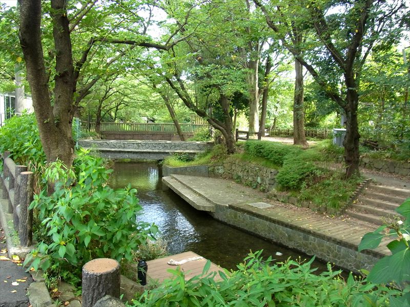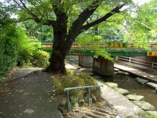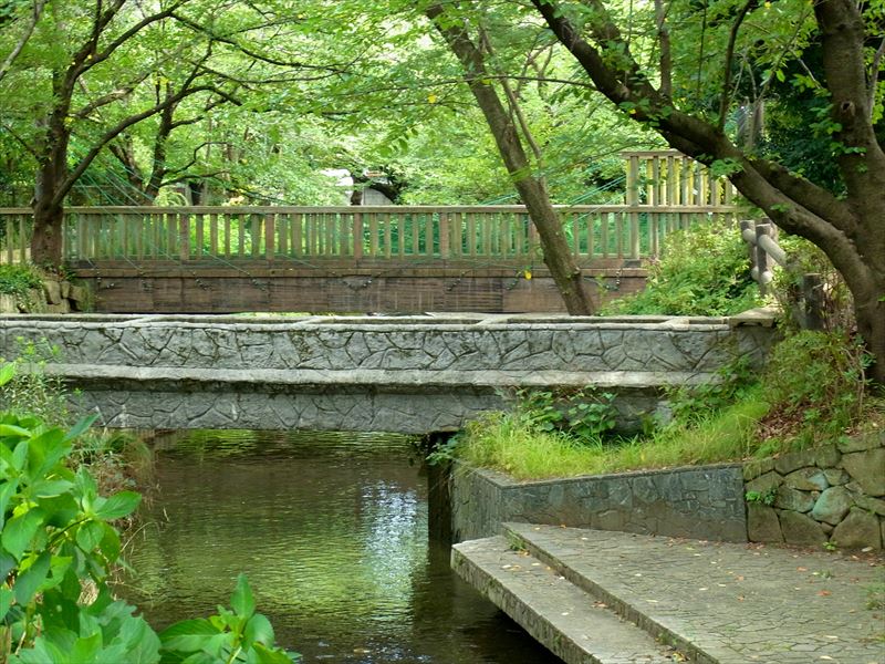 用水路は公園からさらに進むと東名高速道路の下を流れ、南武線の久地駅付近で二ヶ領本流と合流します。