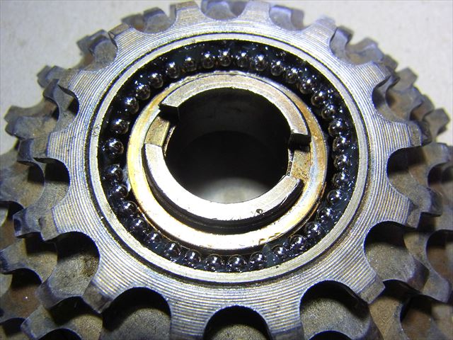 サンツアー (前田工業) の古いPRO-COMPE プロコンペです。 レシオは5速14~28Tのボスフリーです。 分解掃除をして、鋼球SUJ-2 1/8 (3.175mm) をすべて交換しました。