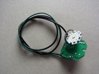 ライト本体の中にLEDモジュール本体を入れてダイナモに接続するのを取り出し、マイナス側はライト内部の端子に半田付けしました。