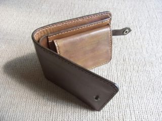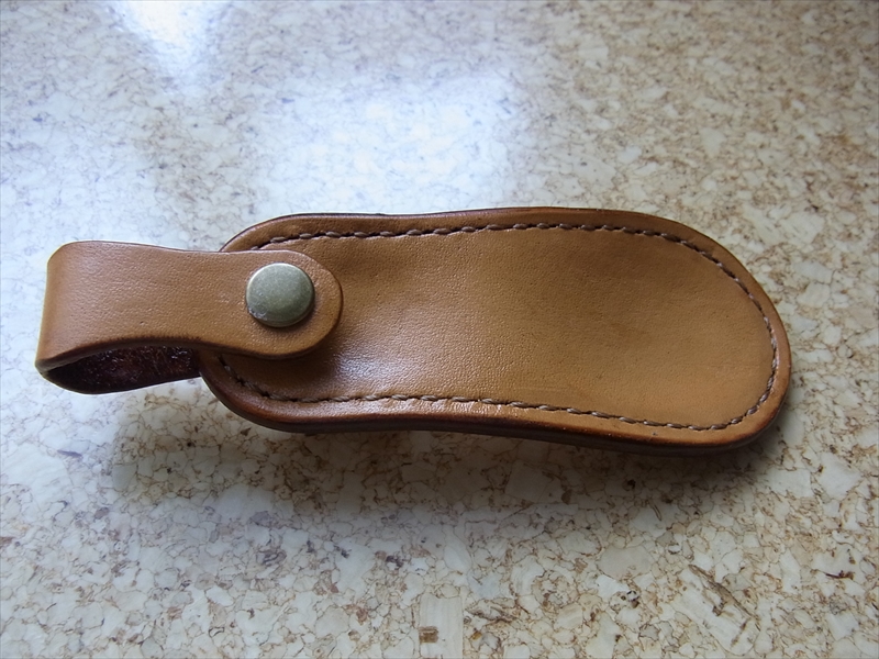 最後はトコノールでコバを磨き、持ち手にバネホックを付けます。